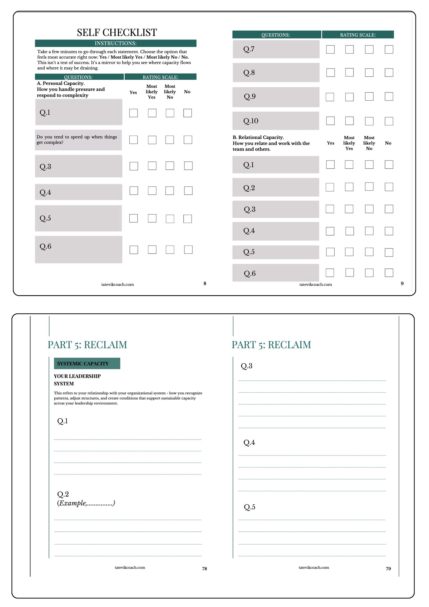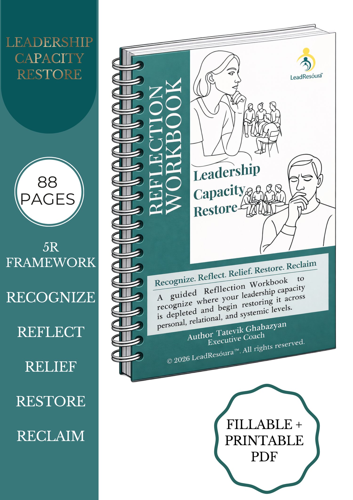 Leadership Capacity Restore. Reflection Workbook + Observational Diary (fillable, printable)