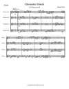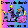 Chromatic March is a trumpet quartet on the easier side of advanced. We put the skill level on this piece at the Trumpet Pro level, which is the fifth of seven levels in our system. The highest note in the first trumpet part is B natural above the staff.