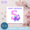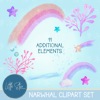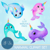 Cute Rainbow Narwhal Clipart Set