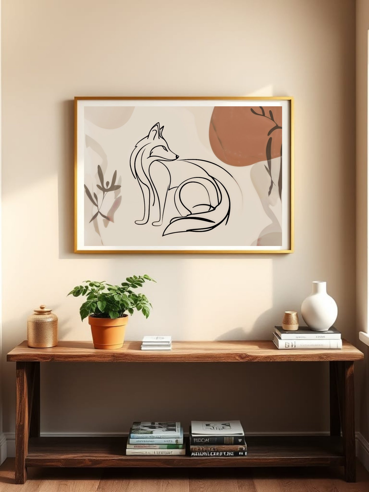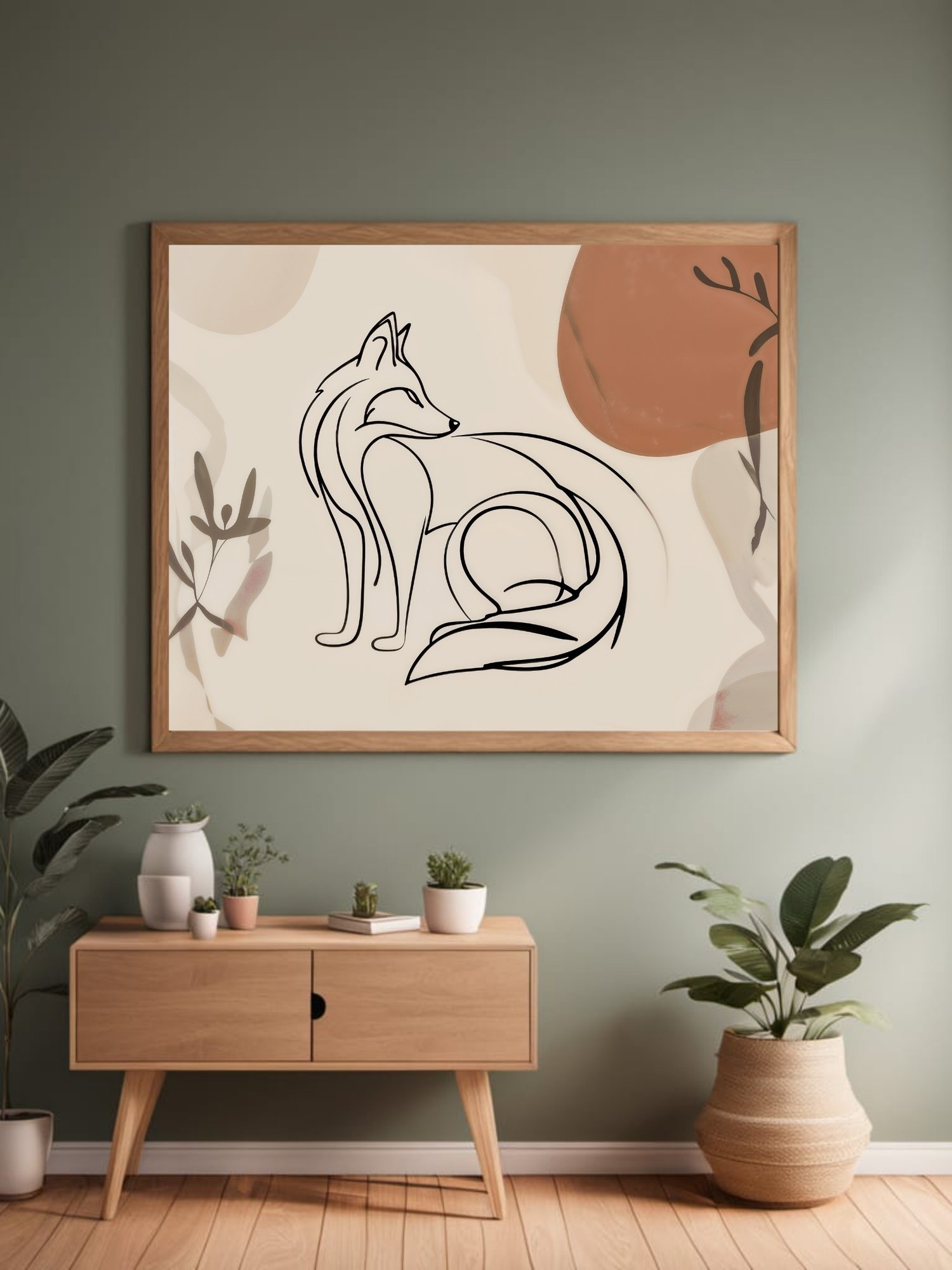 Bring calm and sophistication to your space with this elegant minimalist fox line art. Featuring clean lines and warm neutral tones, this abstract animal print adds a modern and tranquil aesthetic to any room — perfect for Scandinavian, boho, or Japandi-inspired interiors.