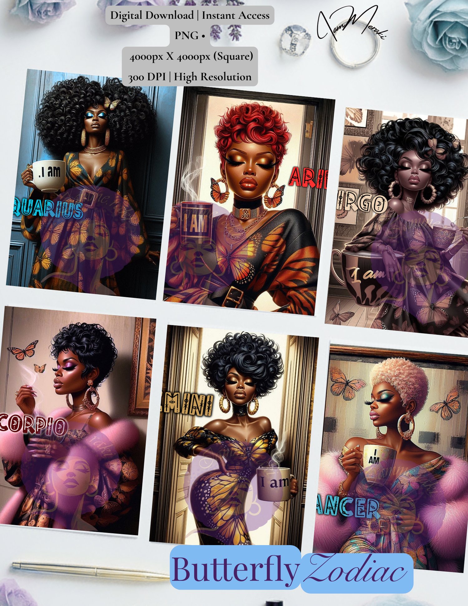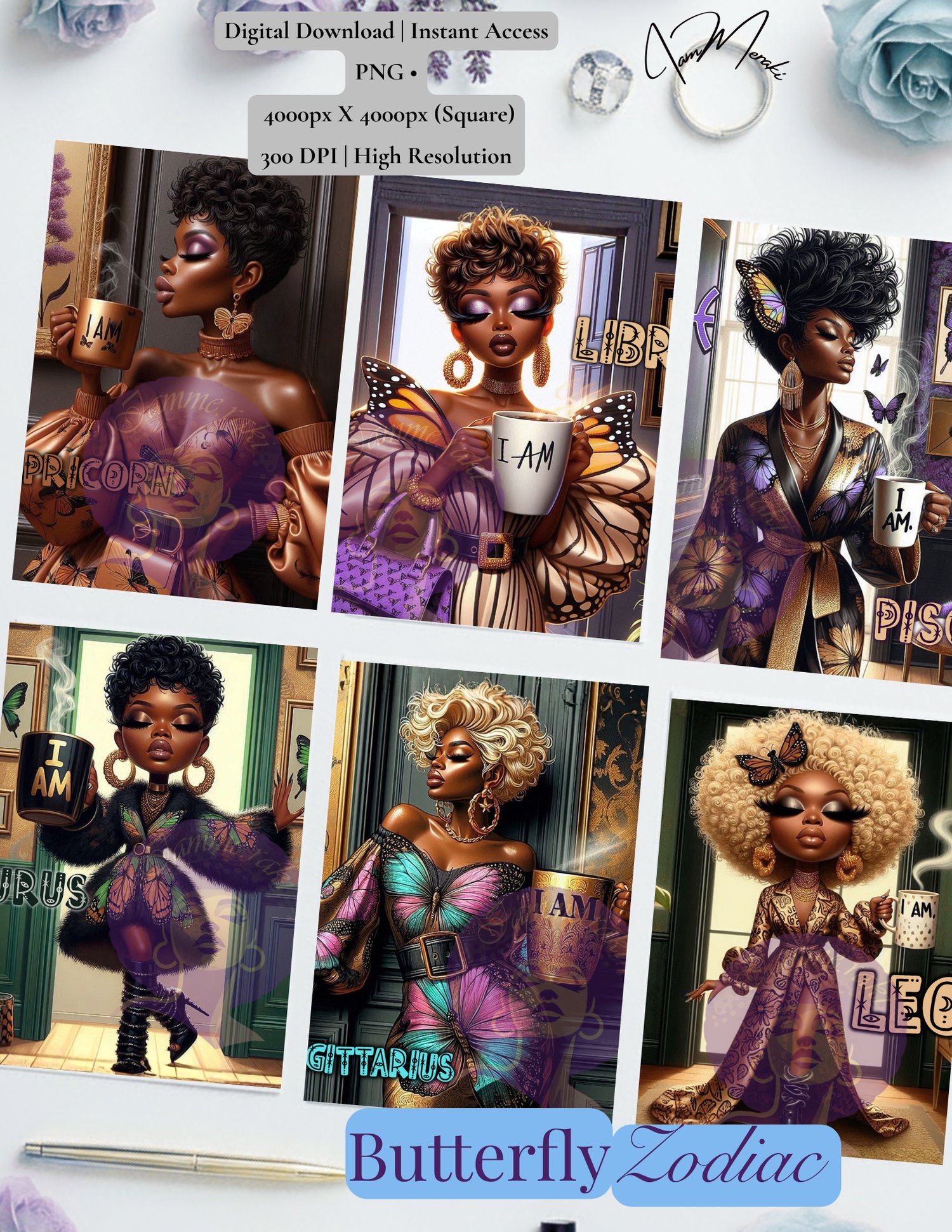 Melanated Zodiac Butterfly Art Asset Bundle