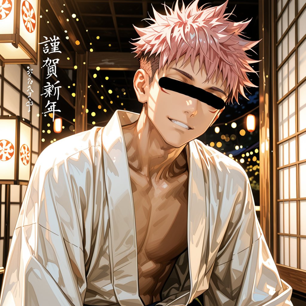 日本の正月をテーマに、着物を着用している男性を、キャラクターごとにお任せ作成しました。男らしいキャラクターの魅力を思い切って表現しました。