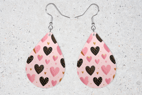 Celebrate the season of love with this Valentine's Day Sublimation Earring Design featuring elegant black hearts and roses. The combination of bold hearts and delicate roses creates a unique, stylish design perfect for crafting memorable Valentine's Day accessories.