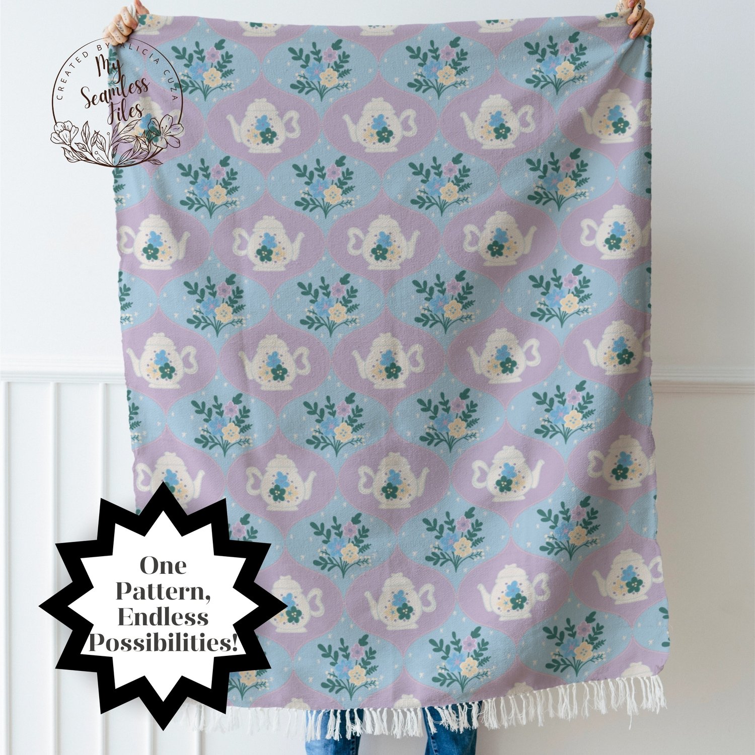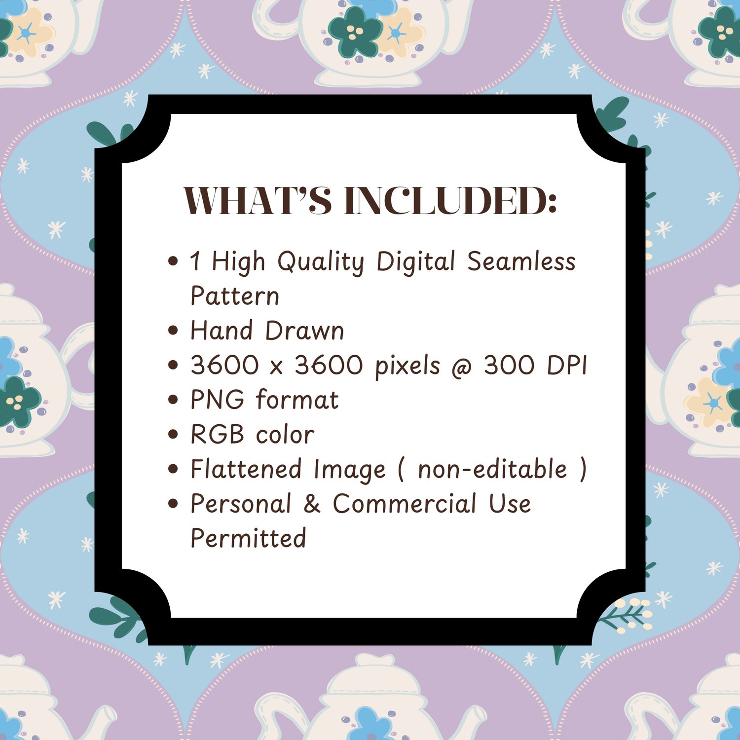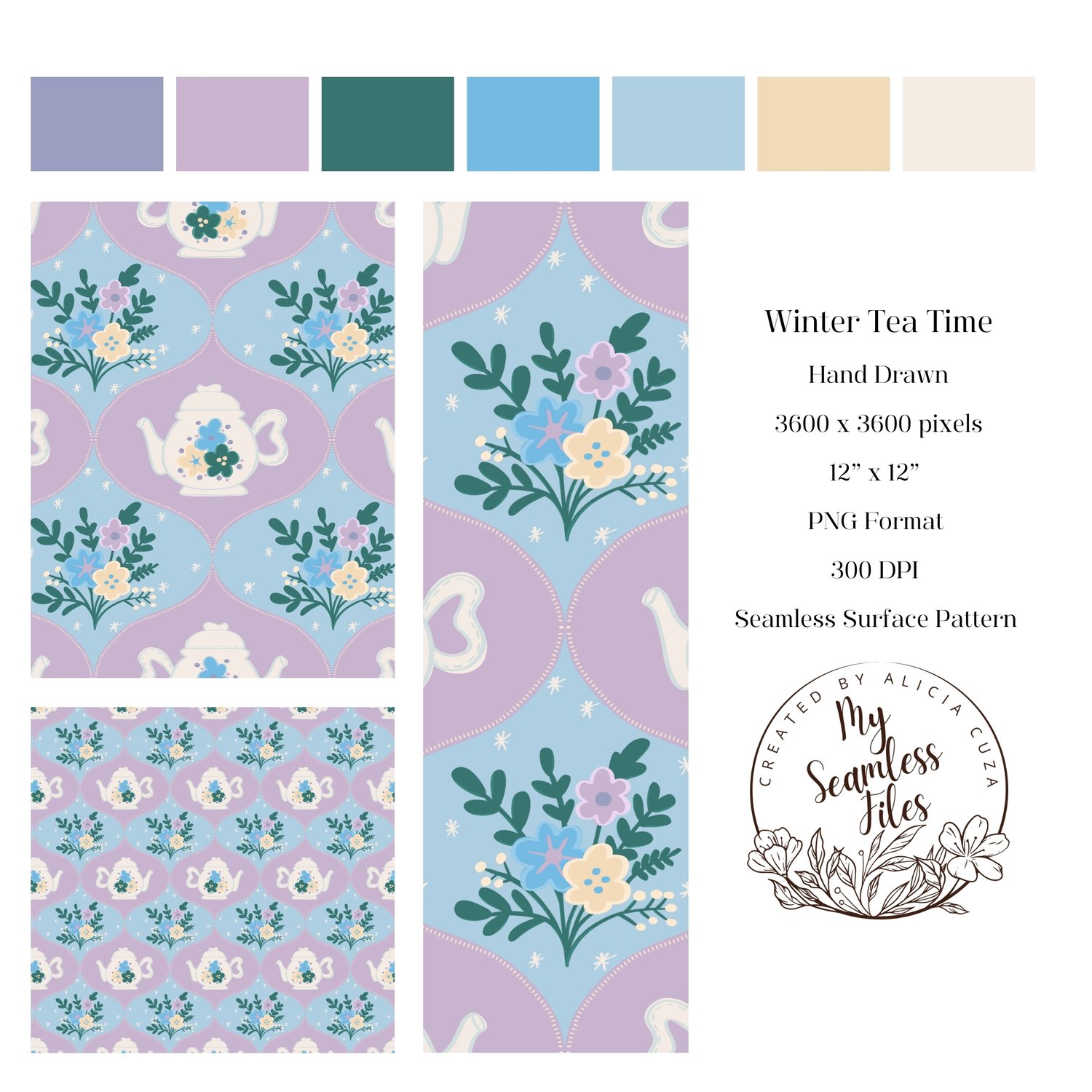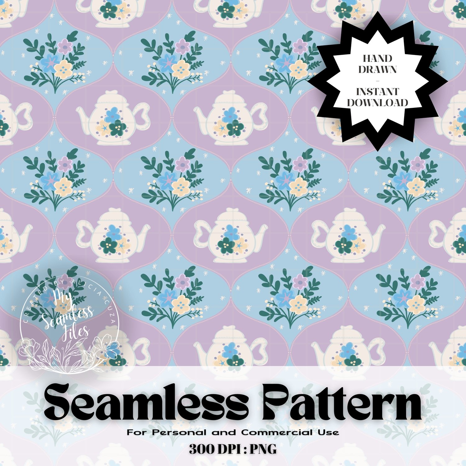 *** INSTANT DOWNLOAD - Hand-Drawn Pastel Winter Teapot Floral Seamless Pattern - Perfect for Boho & Vintage-Inspired DIY Designs! 🌻