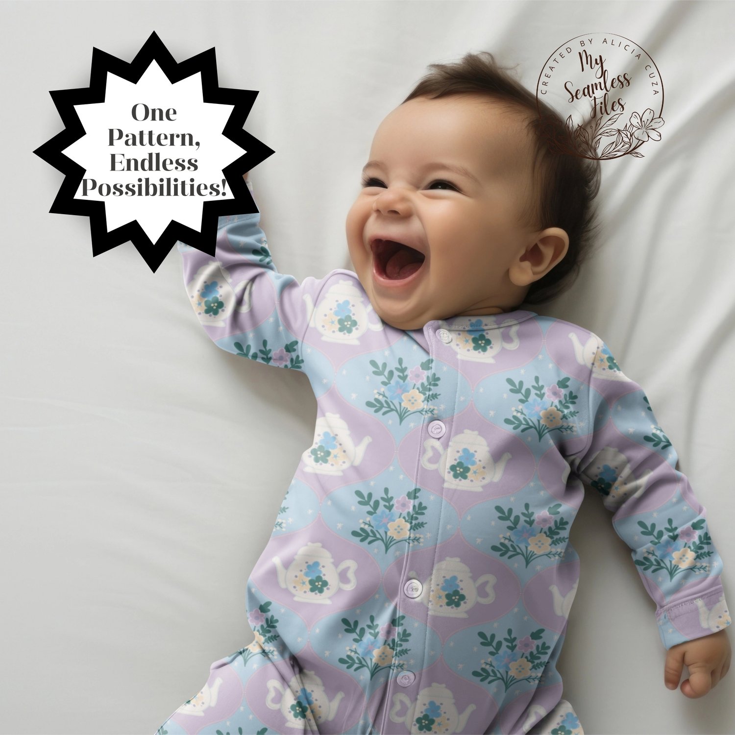 This versatile cute floral pattern is perfect for sublimation ready projects, vinyl cutting, and traditional fabric design. The girly tea time aesthetic appeals to customers who love cottagecore, kawaii, and feminine design styles.