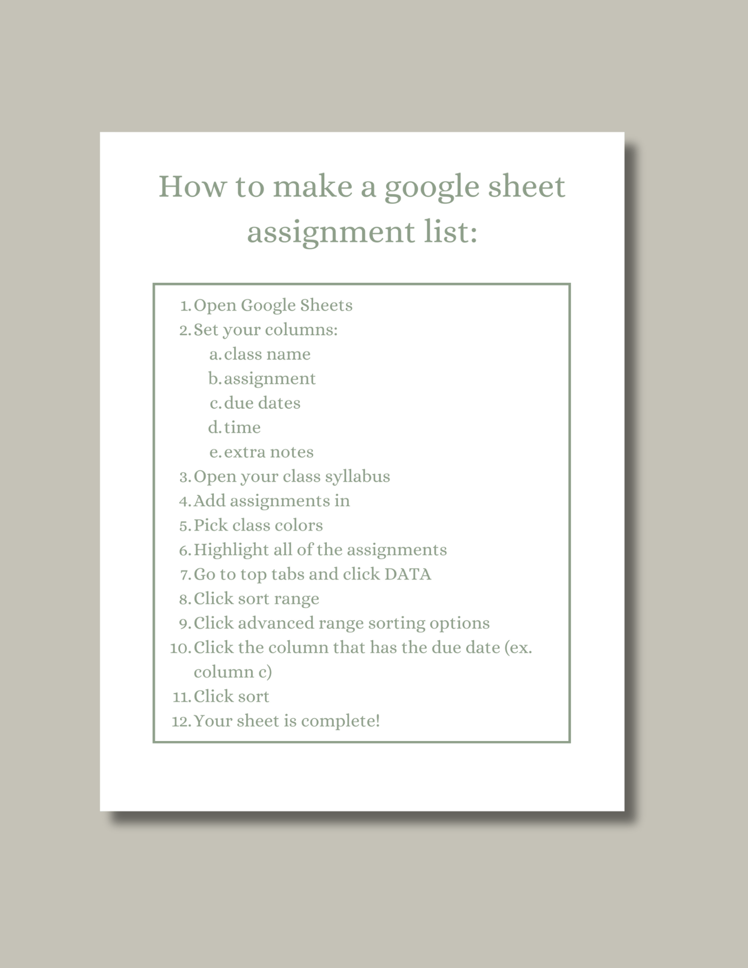 Manage all of your assignments now with a tool that will guarantee academic success! Learn how to create your own google sheet assignment list so you won't ever have to miss another assignment again!