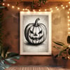 Halloween poster print art decoration party october night. Printable wall art funny scary pumpkin illustration