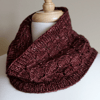 This cowl consists of a pretty honeycomb pattern punctuated with eyelets. It is worked in the round and requires only one skein of worsted weight yarn. Simple left and right cross cable stitches are used to create the honeycombs. The result is a lovely cowl with lots of visual interest.