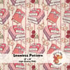 Valentine Book Stack Seamless Pattern – Pink Bookish Digital Paper