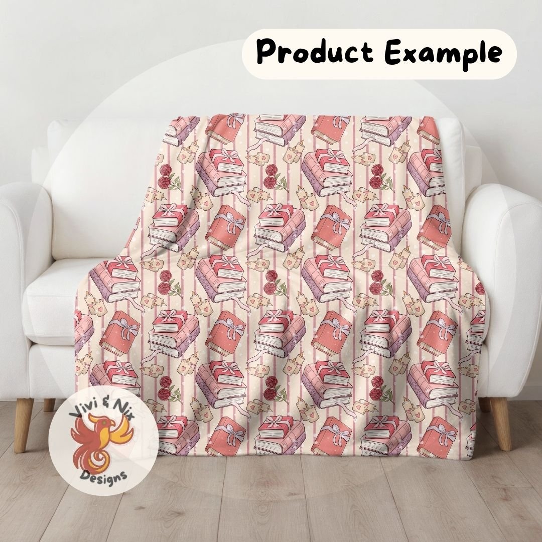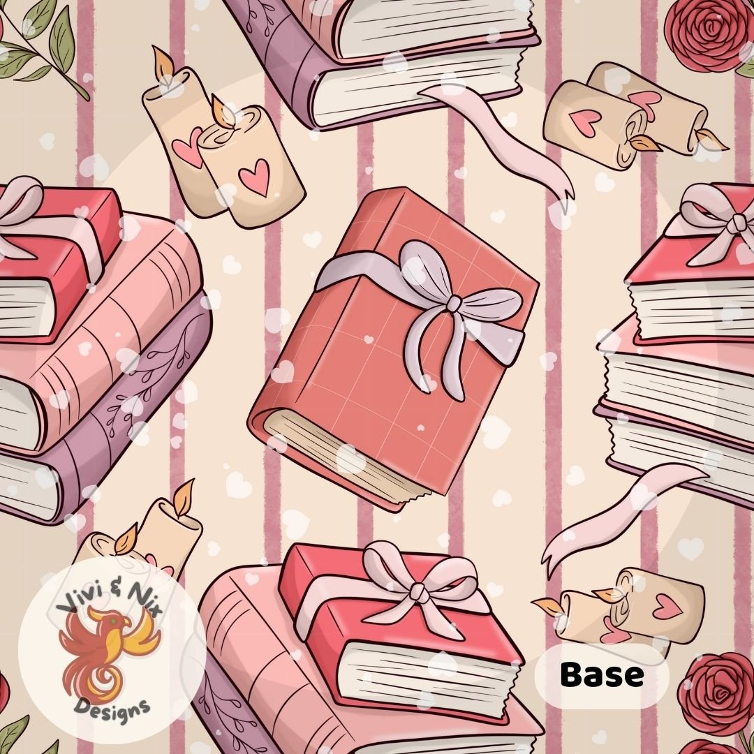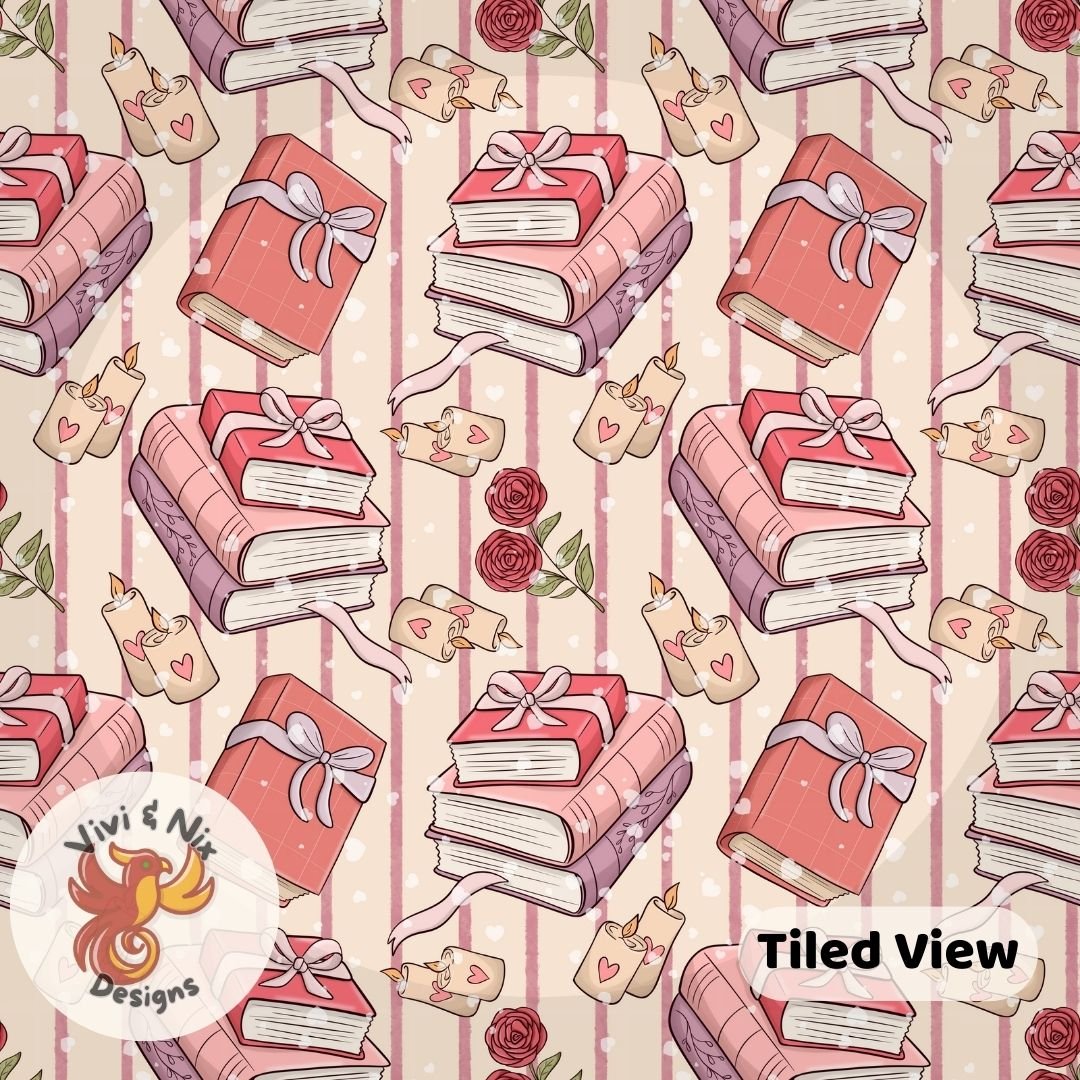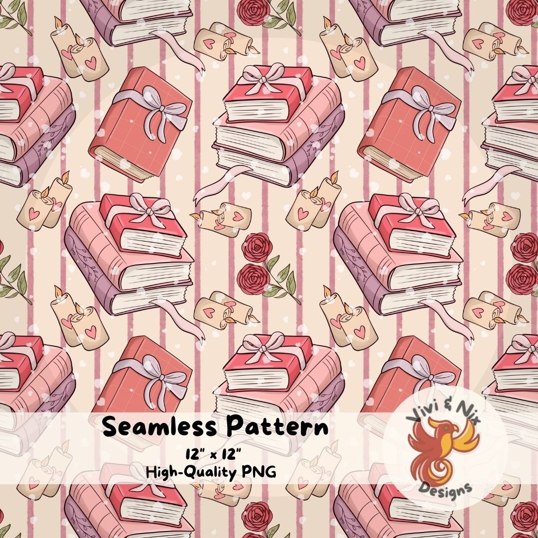 Create cozy, romantic designs with this Valentine book stack seamless pattern, perfect for book lovers and soft Valentine aesthetics. Featuring hand-drawn stacked books, wrapped gifts, roses, candles, and hearts in warm pink tones, this pattern is ideal for both personal and small business use.