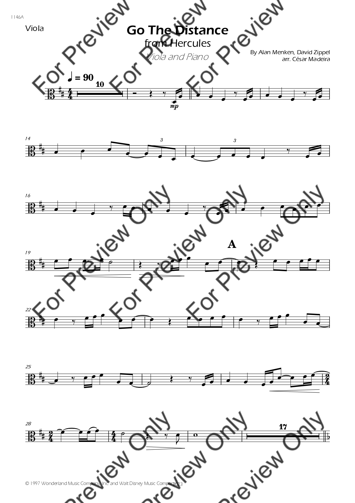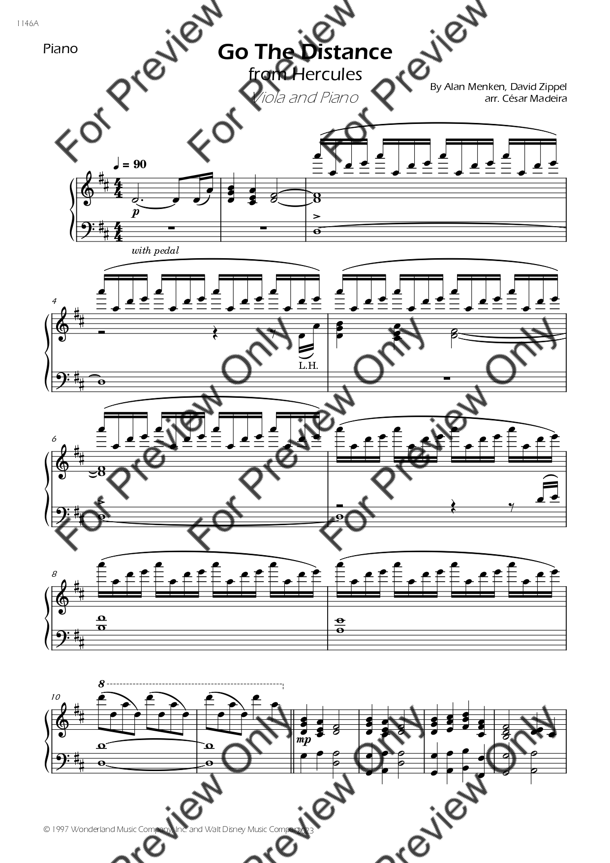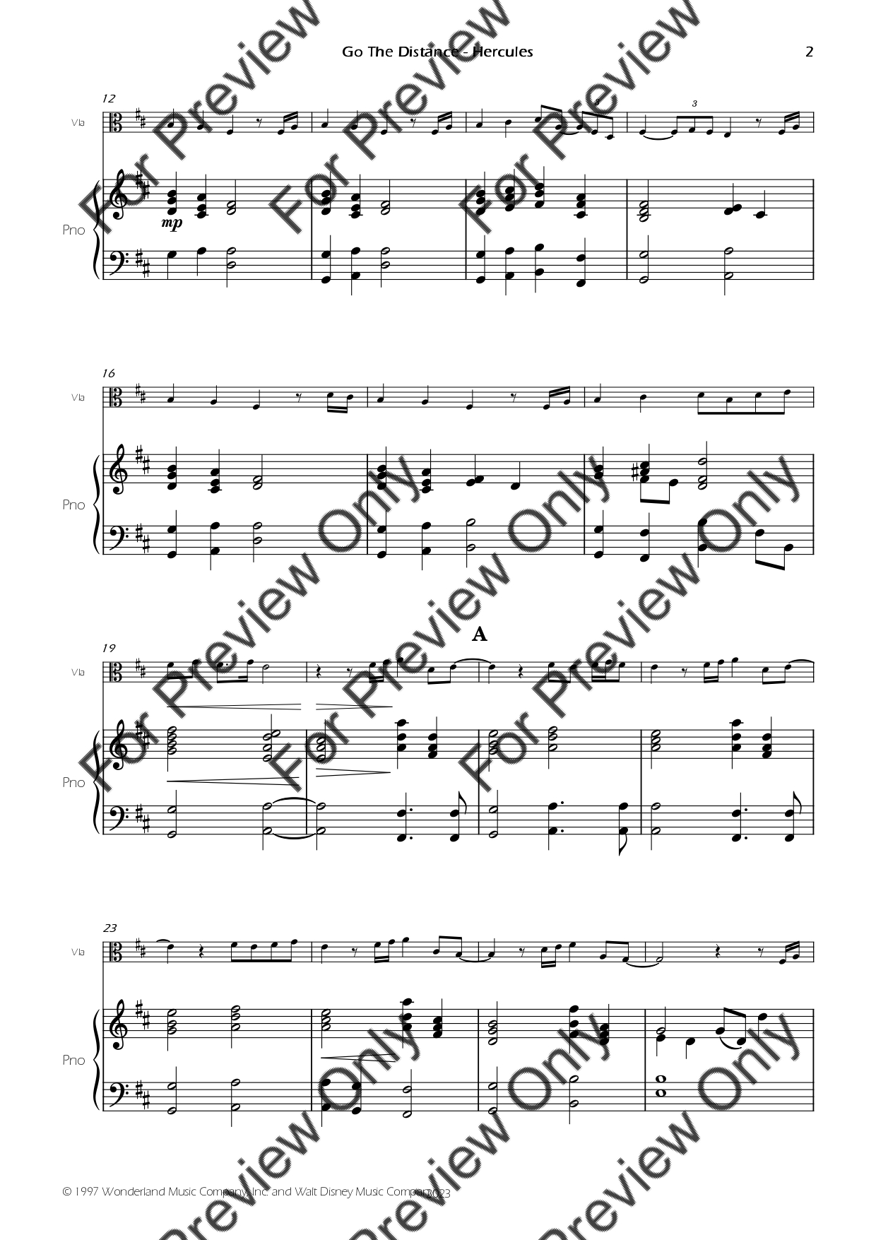 Go The Distance from Hercules by Alan Menken. Arrangement for Viola and Piano. With Full Score and Individual Parts. Have fun!
