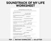 Soundtrack of My Life Worksheet, Playlist of My Life, Music Therapy, Narrative Therapy, Self Reflection, Self Discovery, Personal Growth