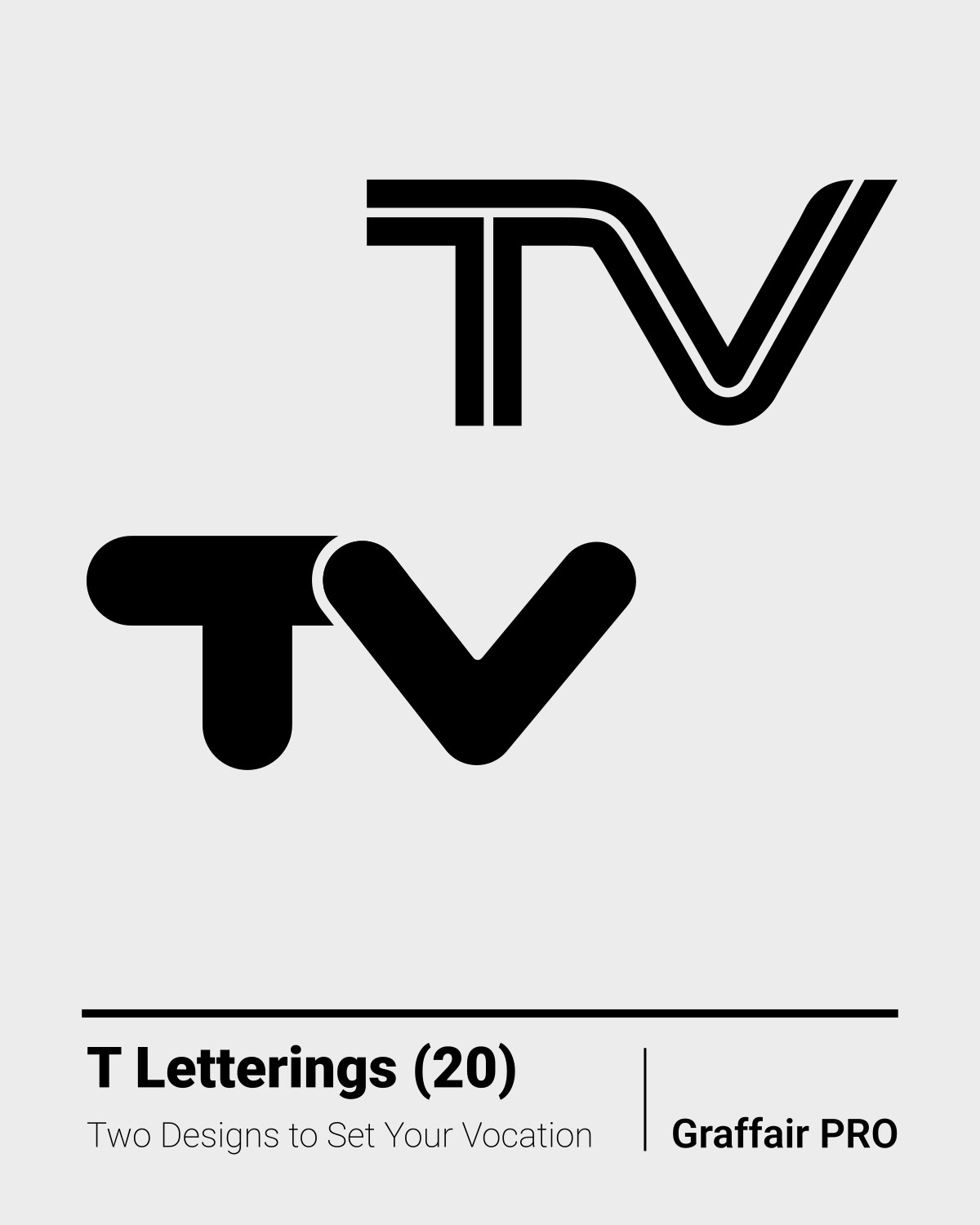 T Letterings (20): The 20th set of two original "T" logo lettering designs to edit and evolve your typography on your visual branding project. These letterings are part of the "800 SVG Letterings" bundle, which also contains 800 other exceptional designs.