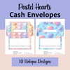 Pastel Hearts Cash Envelopes With Budget Trackers | Valentine Heart Cash Envies With Expense Trackers | Transaction Tracker | Cash Stuffing Logs | Budget Envies