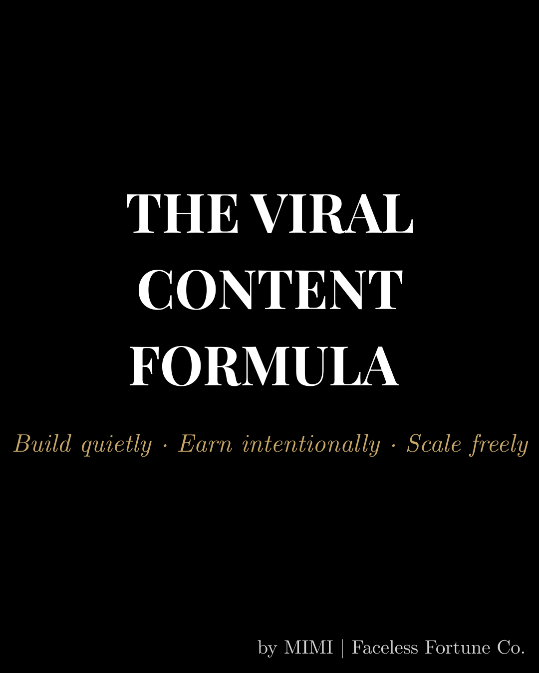 The Viral Content Formula gives you the proven frameworks faceless creators use to go viral on TikTok, Instagram, and Pinterest - consistently.