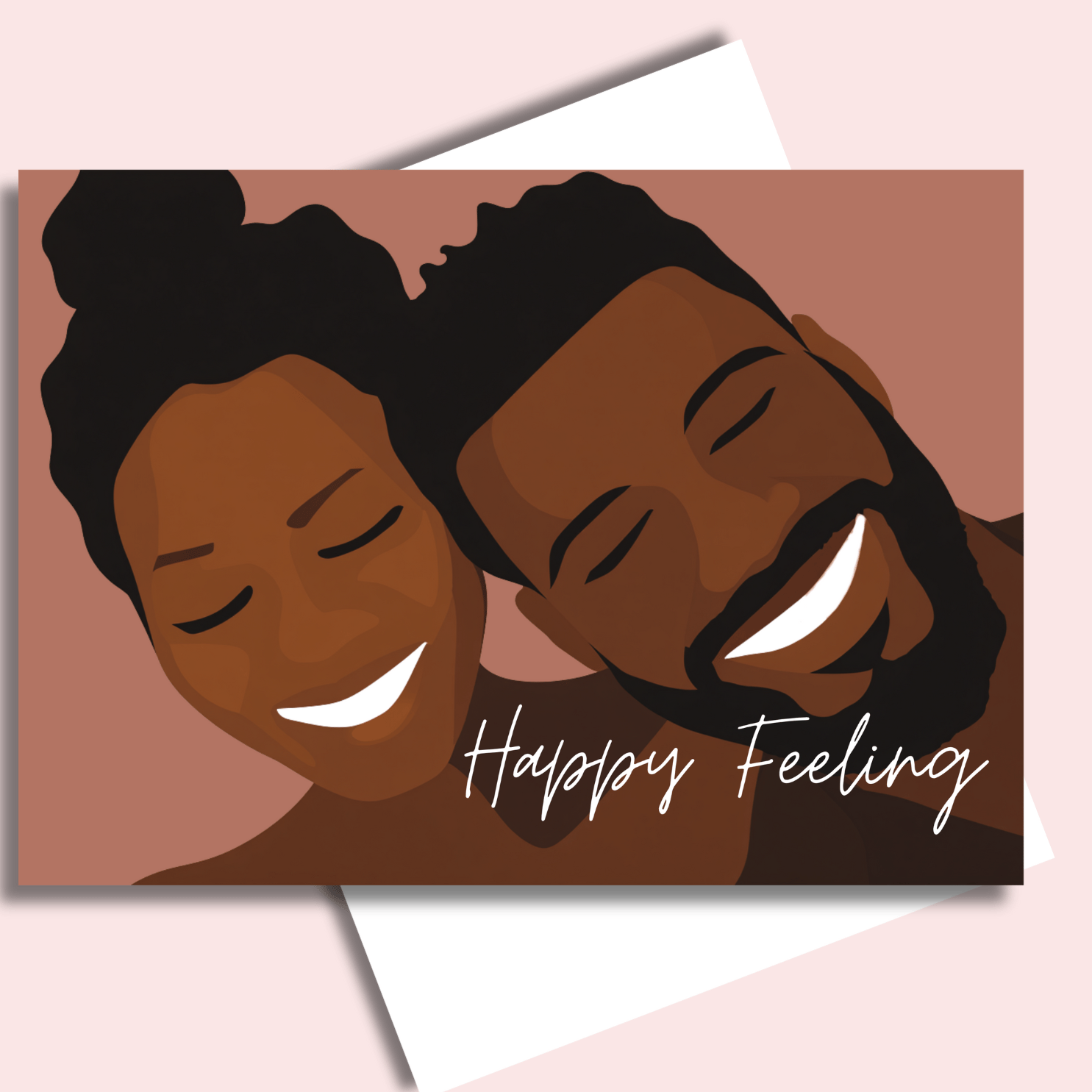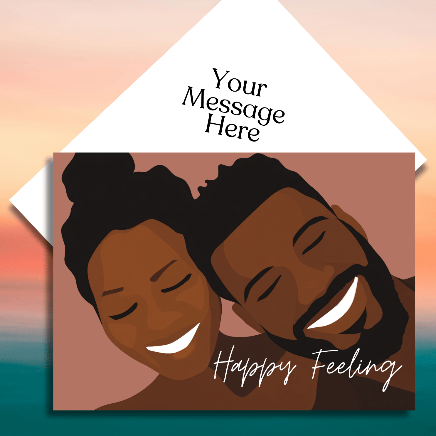 Happy Feeling Greeting Card | Black Couple Greeting Card | Blank Inside | Black Girl Greeting Card