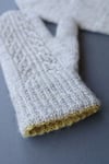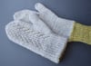Both the LH and RH liners and outers are worked with the thumb on the LH side (with BOR on RH side). Due to the different position of the broken rib patterning between the LH and RH mittens, when both are finished, they will fit as LH and RH mittens, with the thumbs in the correct position!