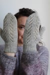 Using Shilasdair Yarn’s gorgeous Instagram grid as the inspiration (in particular, their photographs of The Quiraing with sunlight peeking through the clouds), the dramatic Skye landscape is reflected in the design’s broken rib, with the light taking the form of a flash of colour at the mittens’ cuff and through the eyelet patterning on the back of the hand.