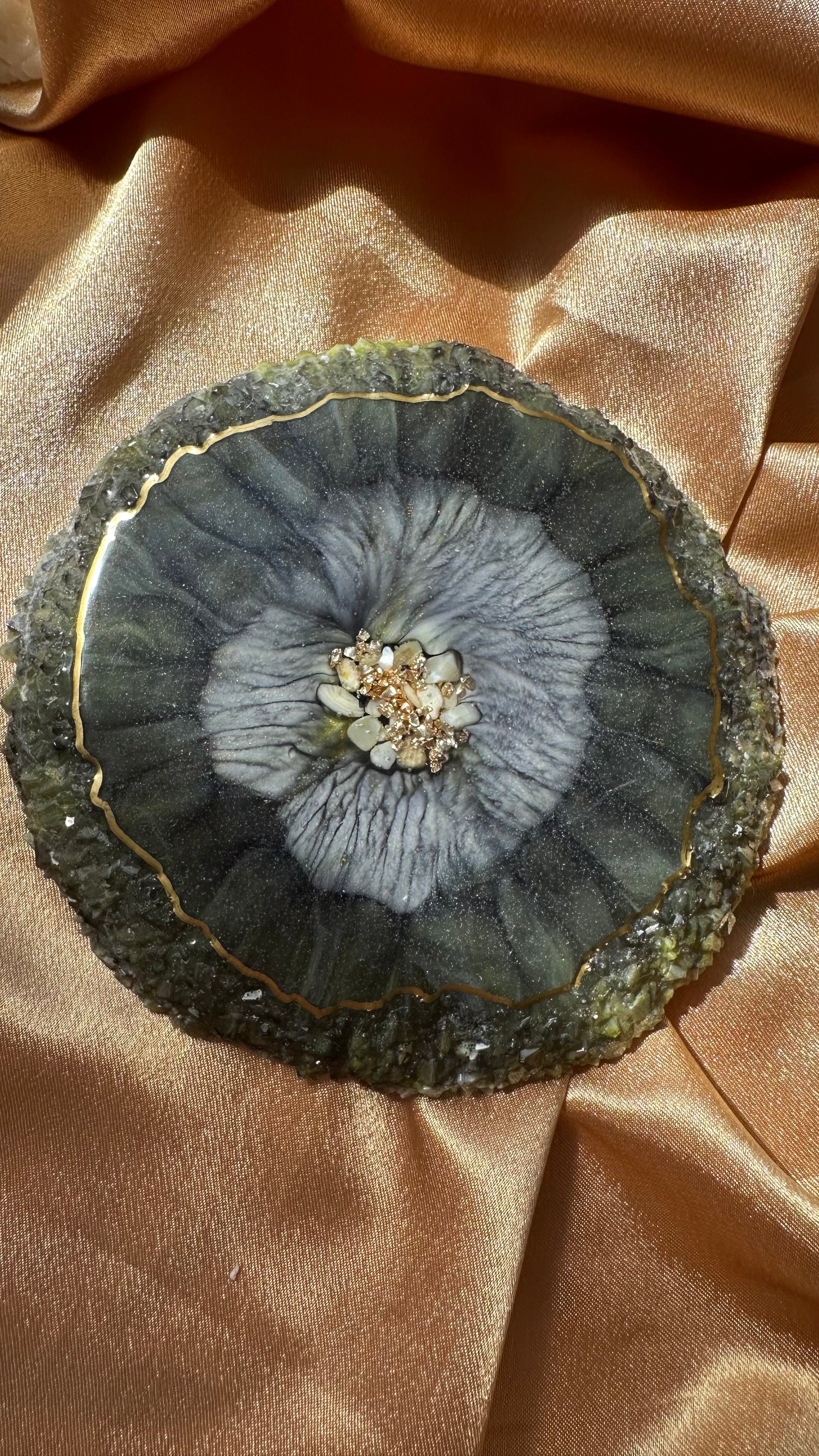This handcrafted piece is a perfect accent for your space — use it as a base for hot drinks, jewelry, candles, or home fragrances.