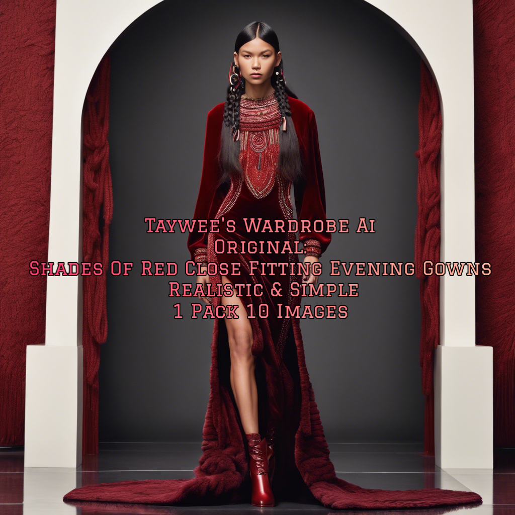 Taywee's Wardrobe Ai. Original: Shades Of Red Close Fitting Evening Gowns Realistic & Simple. (Digital Files In Raster Format) Click To Buy. Price in USD.