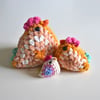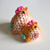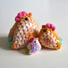 The Plush Granny Square Chicken is crocheted using two simple granny squares. It comes in two sizes so you can create a Mother Hen and a Baby Chick. It is designed using super bulky weight 6 chenille velvet yarn but it can also be made using thinner yarns in cotton or acrylic. This versatile pattern allows for endless yarn color combinations, and can be crocheted using yarn scraps so it’s suitable as a stashbuster project. There are many ways to customize and make use of this amigurumi, such as adding a keyring to turn it into a keychain, or stuffing it with a satchel of lavender to make it into a soothing scent sachet for your car, office, or room. It will add some rustic, farmhouse charm to your life! This pattern is great to make as a gift for your friends and family, as well as a product to sell at craft fairs. It’s the perfect market prep pattern to work up as it’s relatively quick, easy, and an attention grabber!