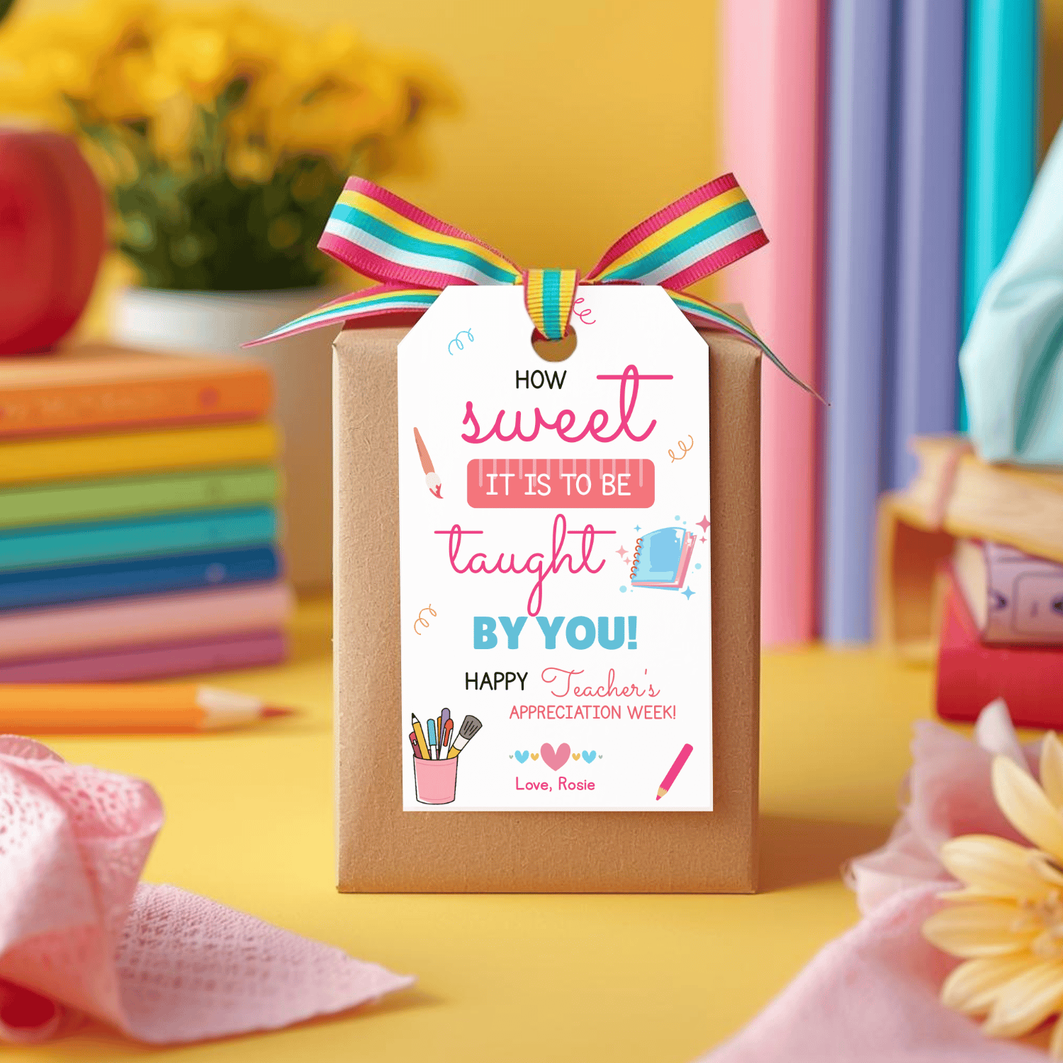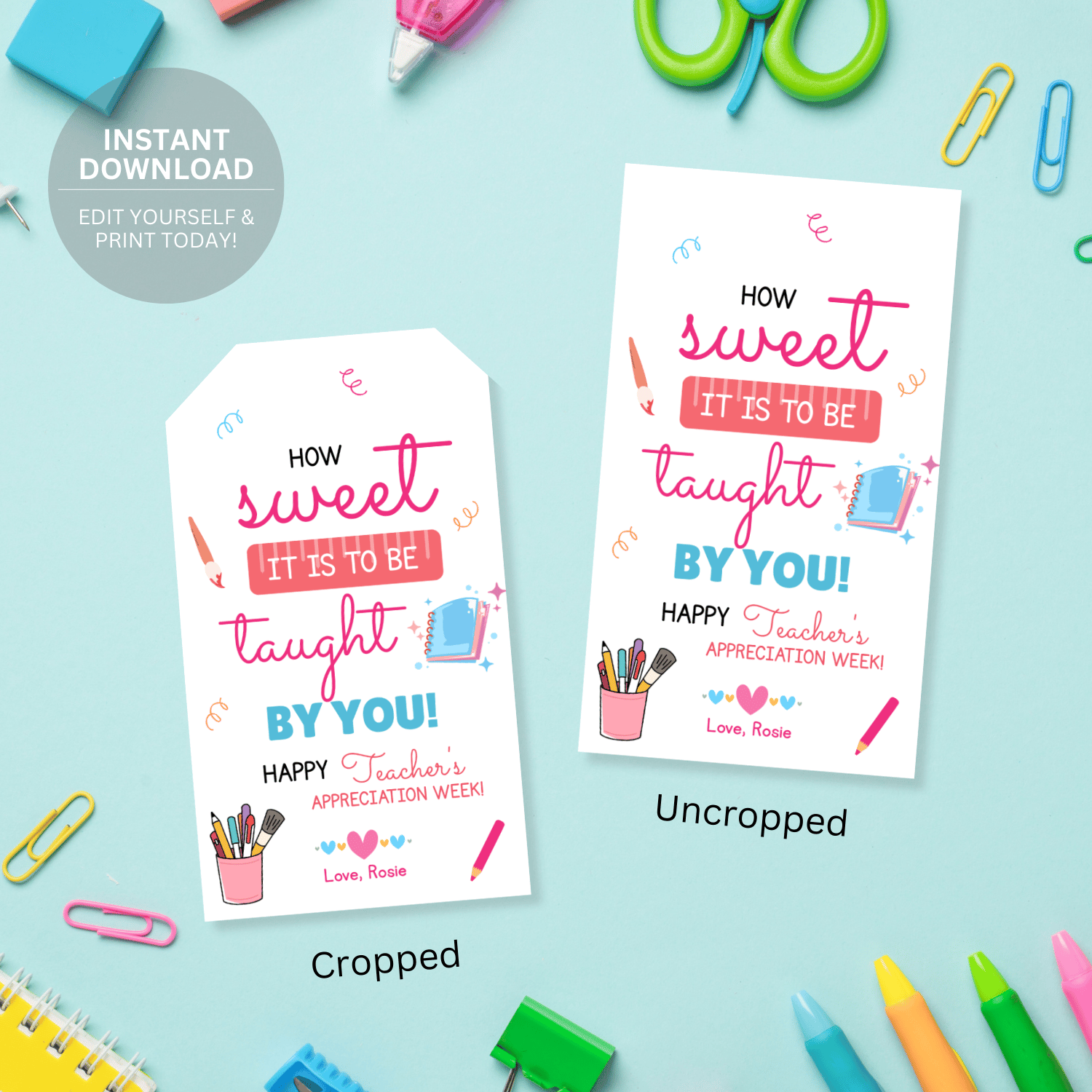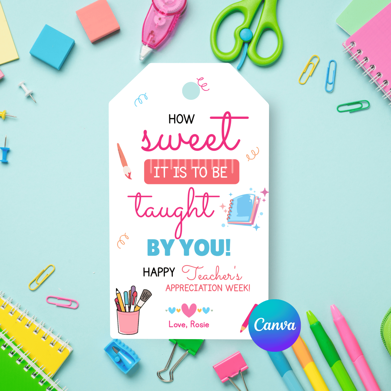 TCHR002 Printable Teacher Appreciation Tags | How Sweet It Is To Be Taught By You! | Canva Editable | Instant Download