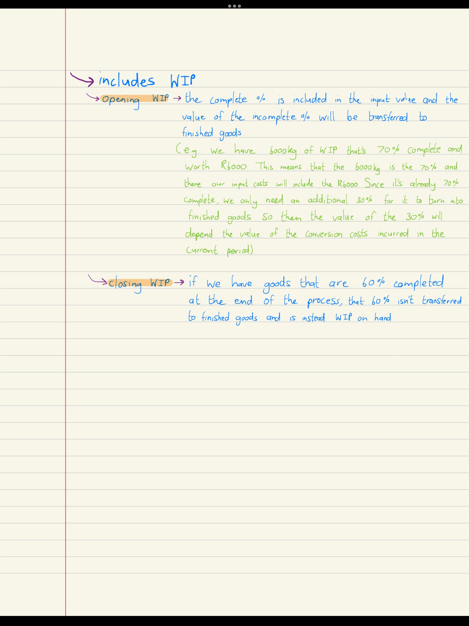 The notes provide explanations on the job costing concepts.
