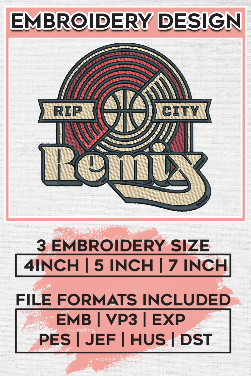 NBA G League Rip City Remix Team Mascot Logo Embroidery Designs, NBA G League Rip City Remix Logo Machine Embroidery Files, NBA G League Basketball Team Logo embroidery designs, NBA G League Rip City Remix, Digital Download