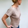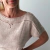 It is worked seamlessly from the top down, with a simple construction. The modern shape and the effortless look make this top a perfect summer basic.