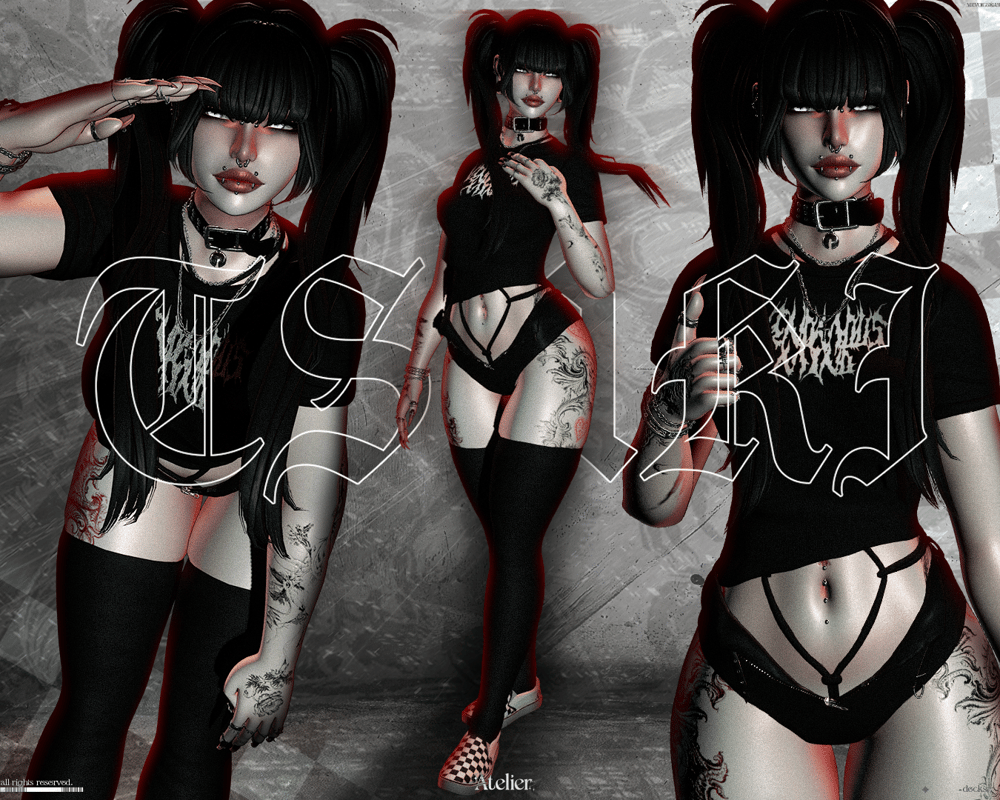 Body (Do not reuse my sculpt) | Face (Do not reuse my sculpt) | Face Texture (Edited) | Eyes | Toenails | Nails | Hair textures | Tattoo Texture | Eyes | Gabby Hair | Jellea Hair | Rene Hair | Raven Hair | Namei Hair | Yuumi Pigtails