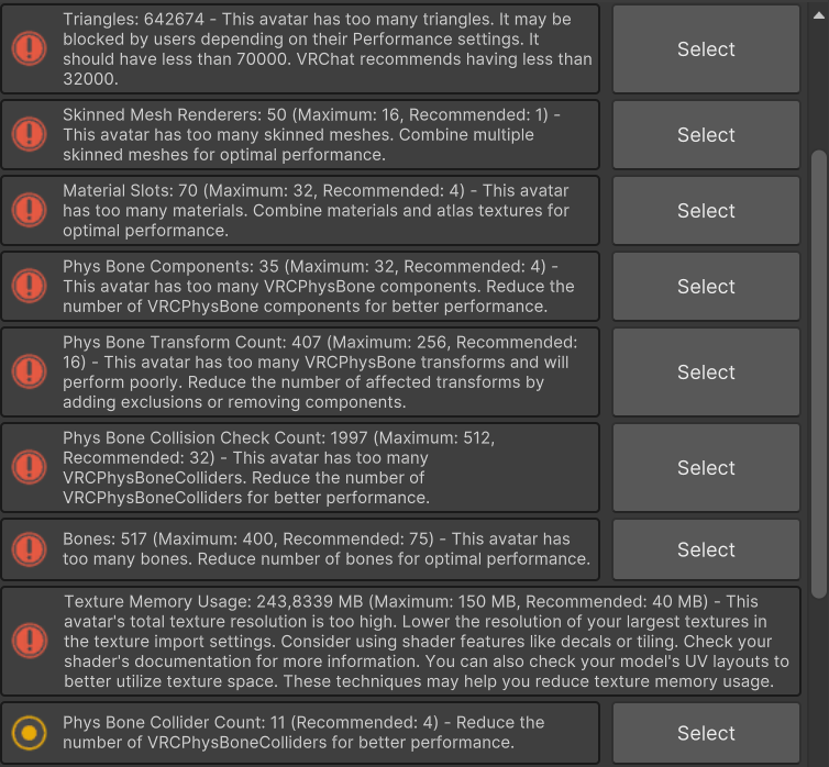 ♱ If you wish to optimise the texture memory further, I recommend using Thry's Avatar VRAM Tool