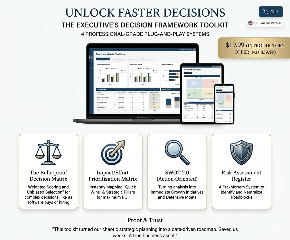 Decide Faster — 4 Business Tools (Matrix, SWOT, Risk)