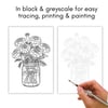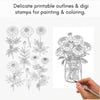 Gorgeous detailed marigold flower outlines perfect for watercolor painting, coloring, card-making and digital art. Bold, beautiful blooms in vases, bouquets, baskets and borders.