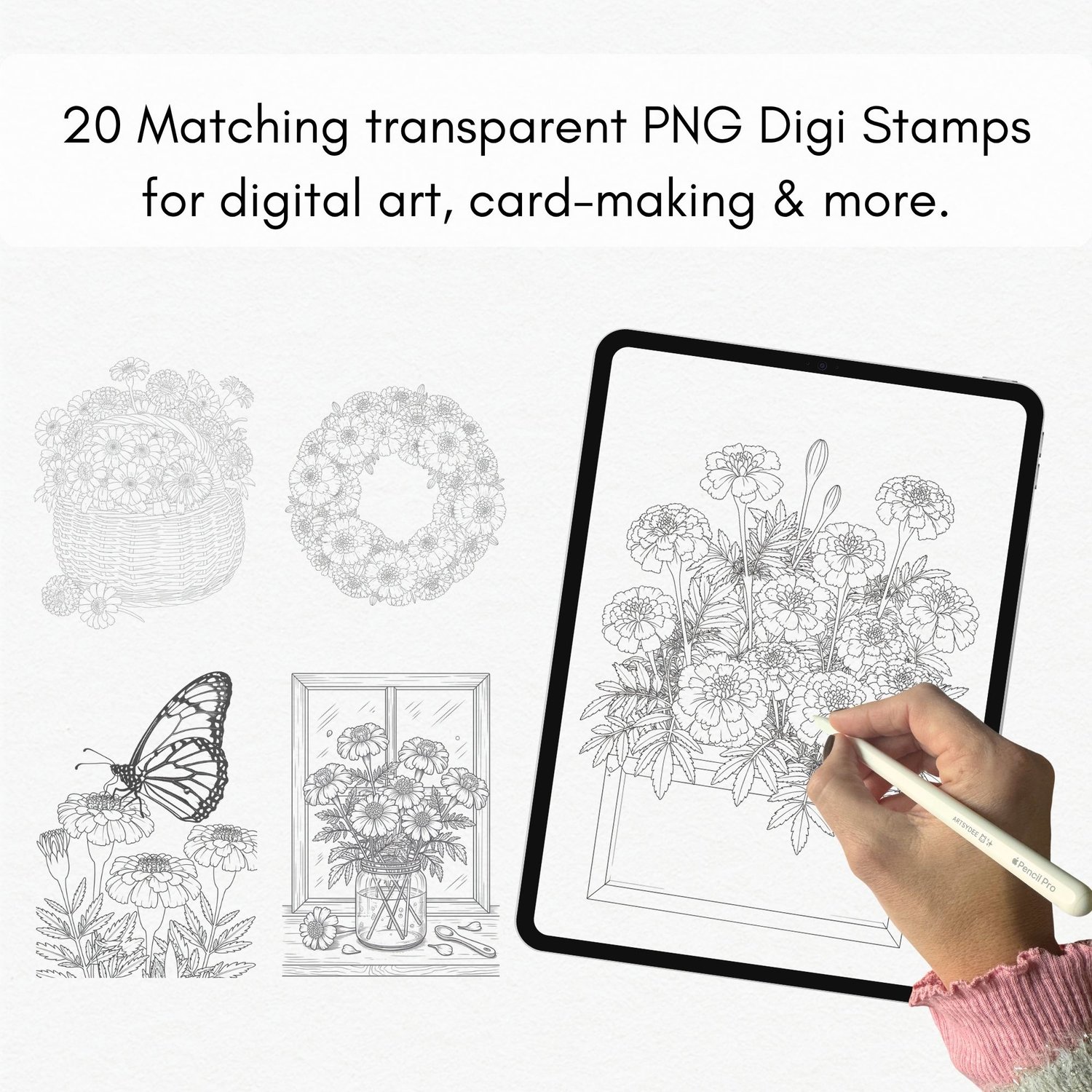 • Matching transparent PNG digi stamps for digital art & card-making
