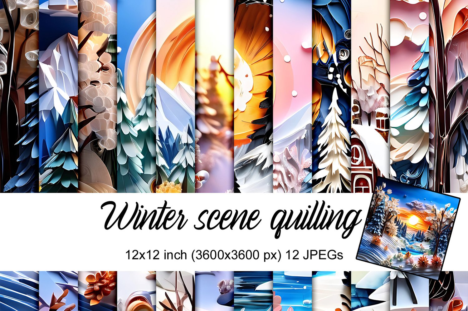 Winter scene paper quilling is collection of 14 digital images, in size of digital paper – 3600 x 3600 pixels (or 12×12 inches).