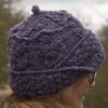 Aran Tweed Knitting Wool from Kilcar in Donegal, Ireland. 200g skeins (Length = 320 m / 350 yards) Lilac-4812. The Hat uses 1 skein and the mittens use 1 skein. The Poncho uses 8 skeins.