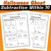 Halloween Ghost Subtraction Worksheets Within 10 | Kindergarten Math (PDF)