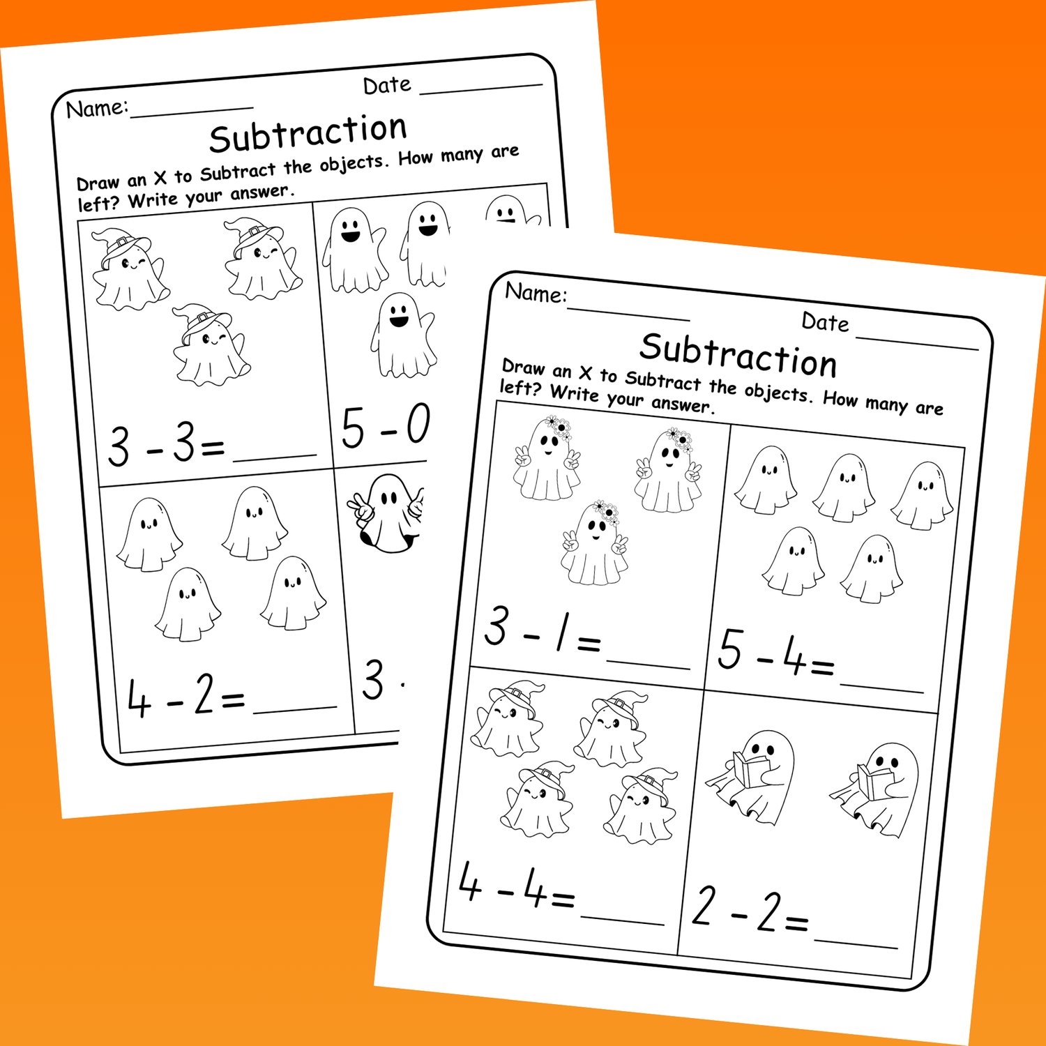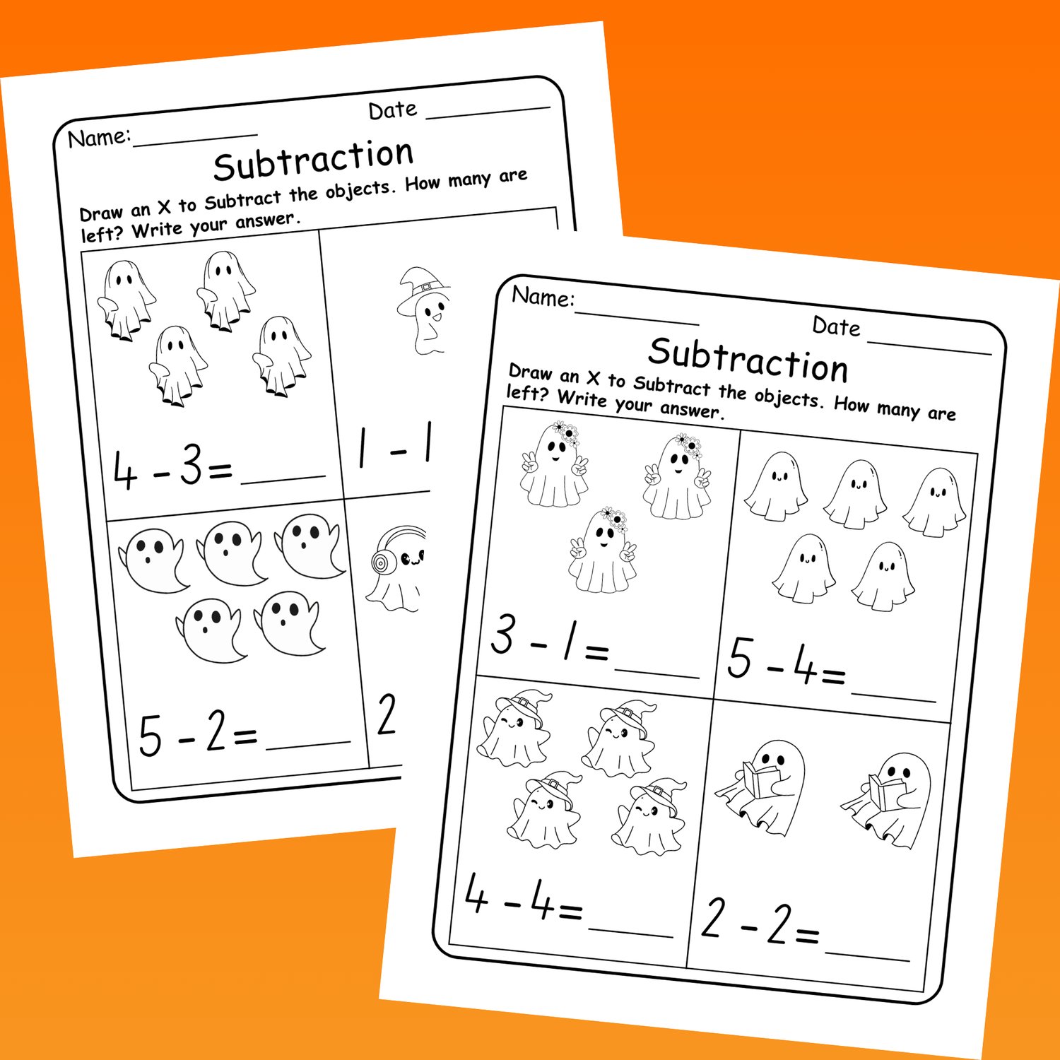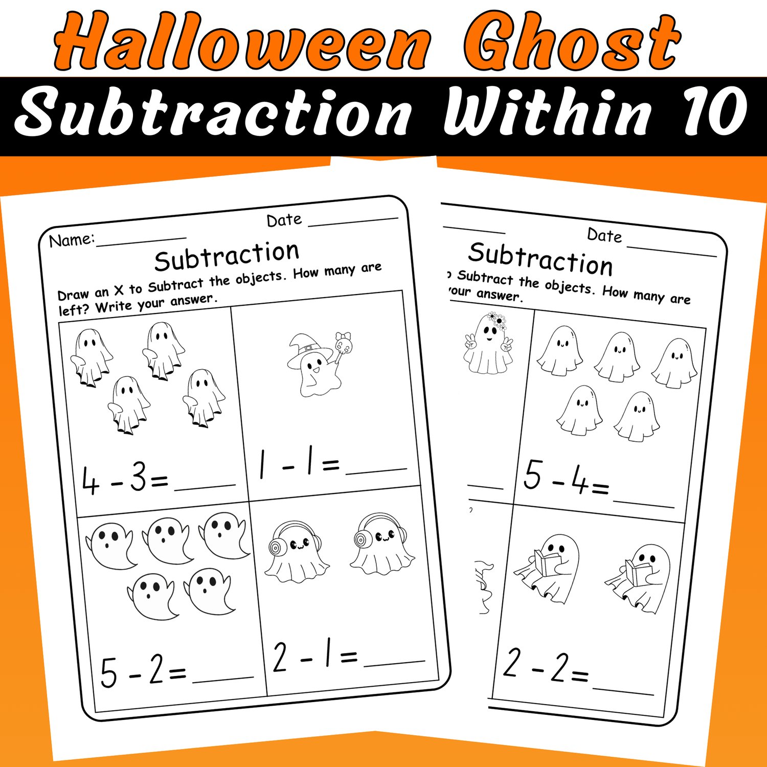 Each worksheet features adorable ghost illustrations to visually support problem-solving and keep students excited. Learners will practice subtracting numbers from 1 to 10 while strengthening number sense, subtraction fluency, and problem-solving skills.