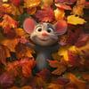 Supa cute little mouse bathing in the fall leaves.