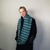 Strip Light Cowl is knit in the round in 5 colours of worsted weight wool. The cowl is knit as a tube so there is no wrong side to the cowl and you work the stranded knitting with the right side always facing you. When the cowl is the desired length, it is grafted together. There are two lengths included. The longer cowl will wrap around your neck twice. The shorter cowl is twisted into a moebius strip before joining and will wrap around your neck once.