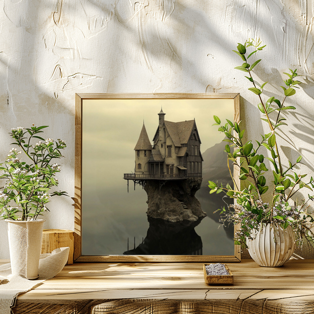 Enhance your space with this captivating printable art featuring a surreal house built in the middle of a lake. This sepia print will add a touch of mystery and intrigue to your home decor. Perfect for those who appreciate unique and unconventional pieces of art. Download, print, and frame it to create a stunning focal point in any room.