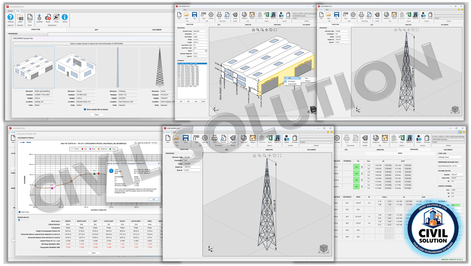 - CHECKWIND v8.4.2: ASCE 7/Eurocode wind loads for buildings/components with graphical pressures and direct export to ETABS/STAAD/SAP2000.