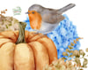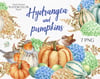 Hydrangea with pumpkins, birds. Garden flowers. Floral compositions. Spring, Easter, wedding theme