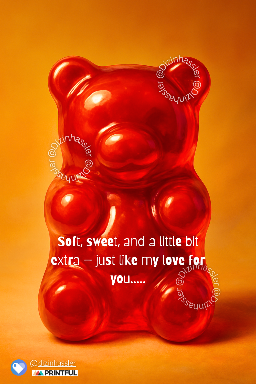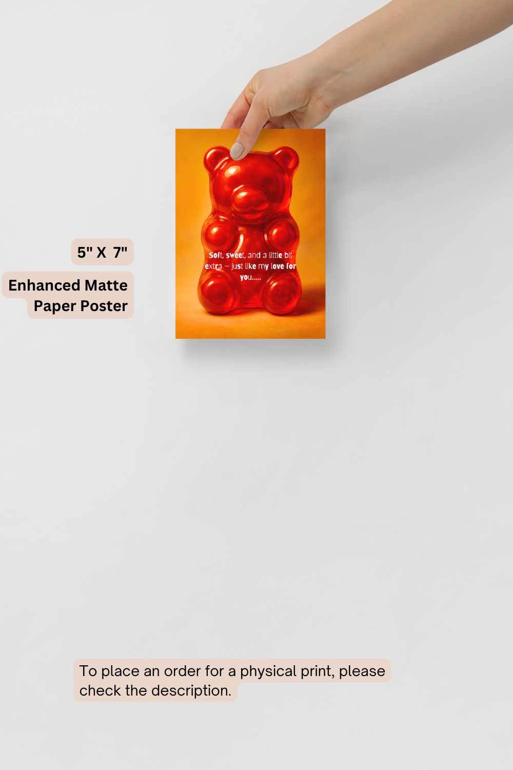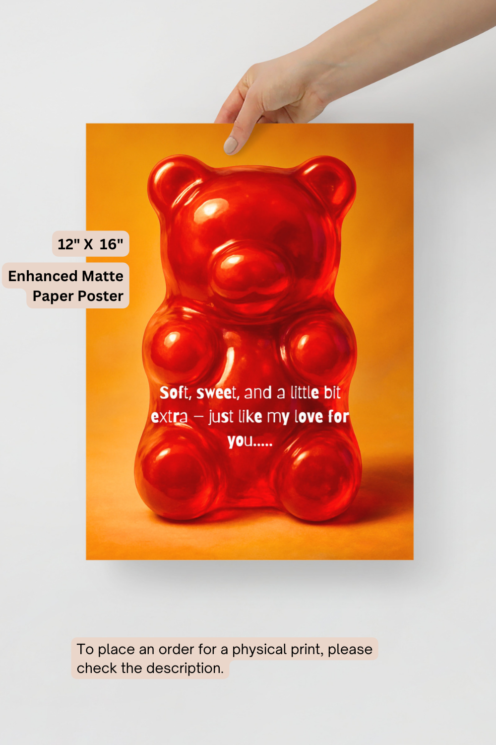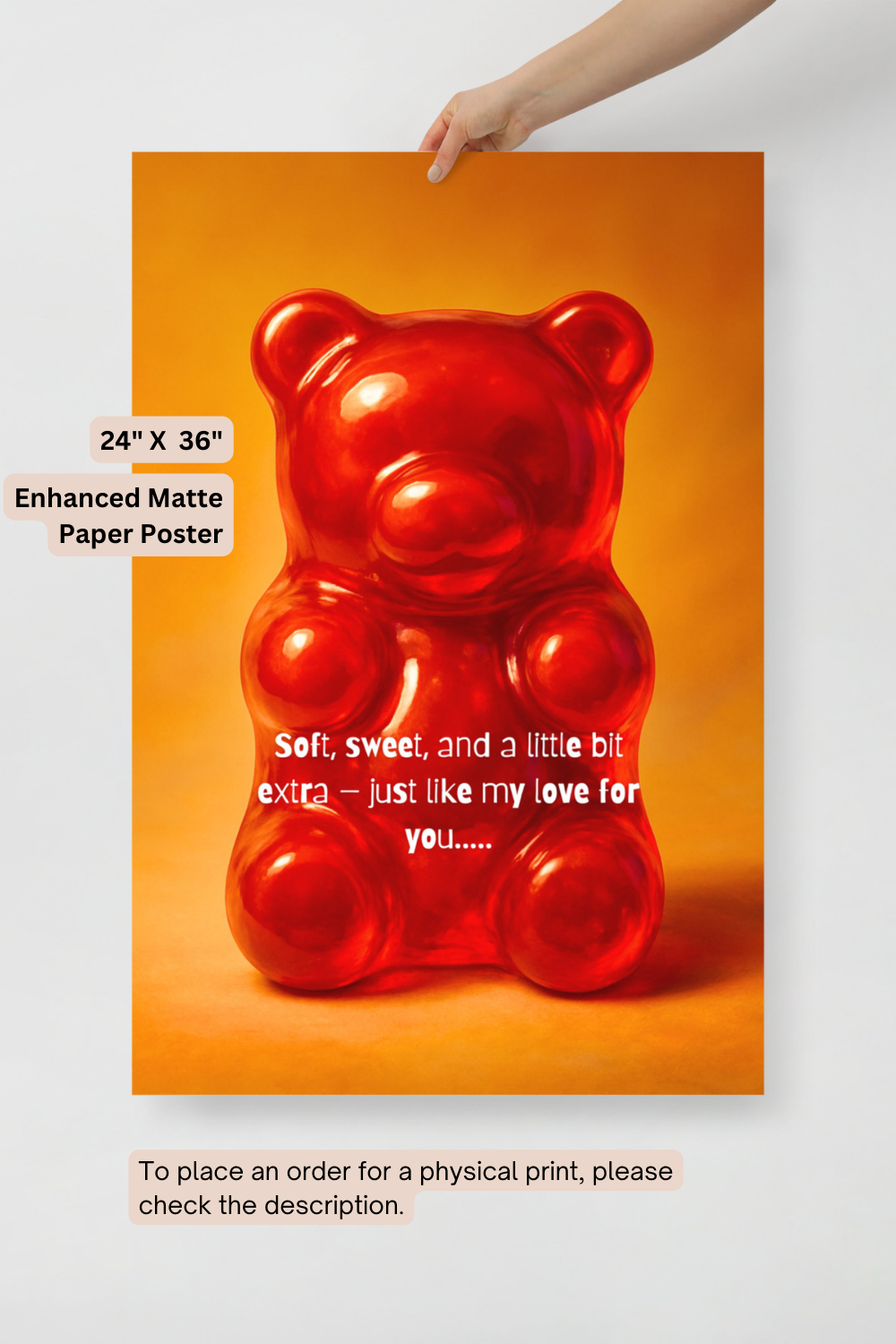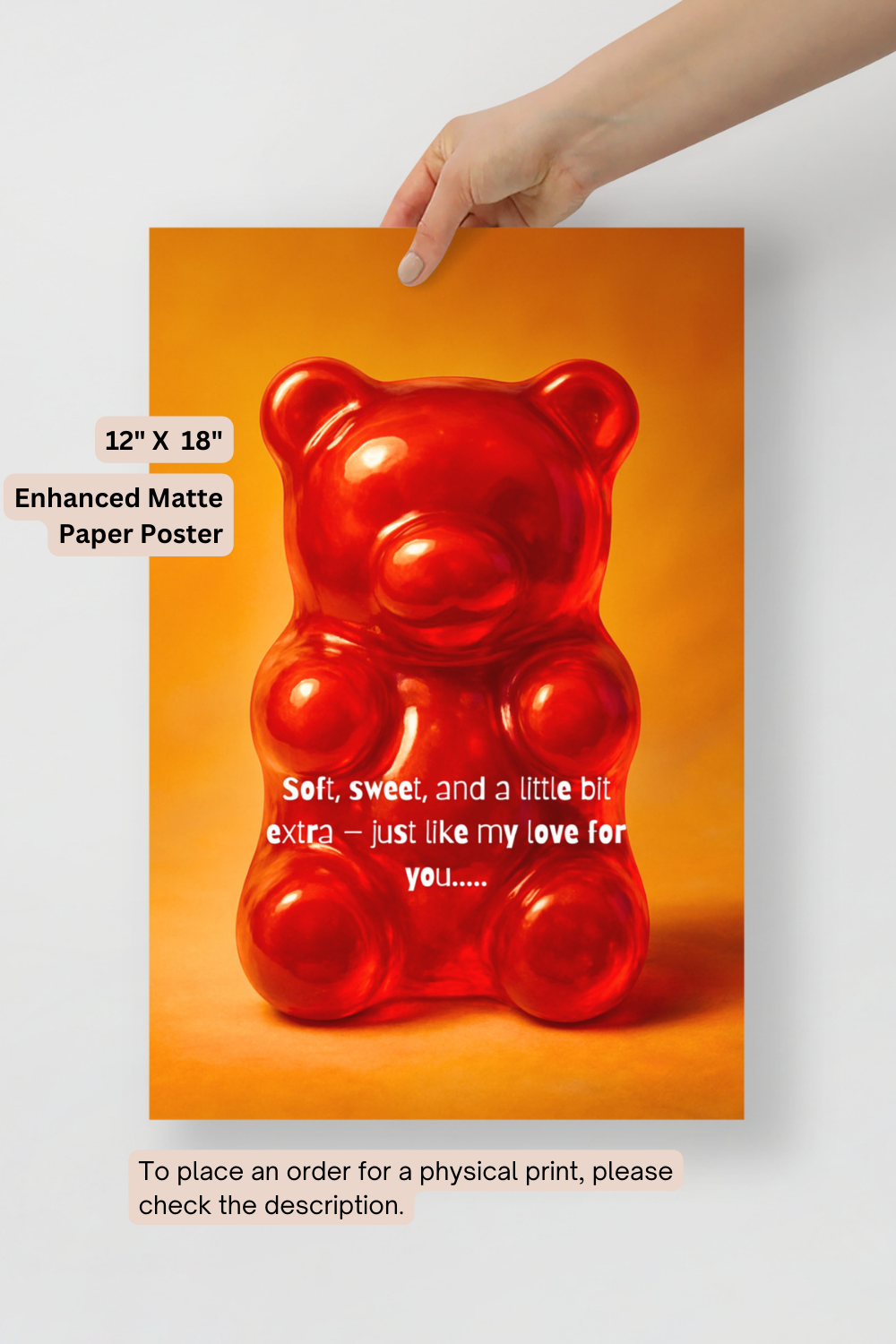 This art print isn’t just a cute gummy bear — it’s a bold reminder that love can be sweet, a little extra, and totally irresistible.