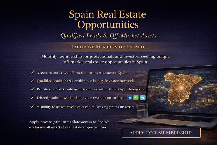 This exclusive monthly membership provides access to a global, private real estate network designed to connect off-market opportunities, qualified demand, and decision-makers in a controlled, professional environment.