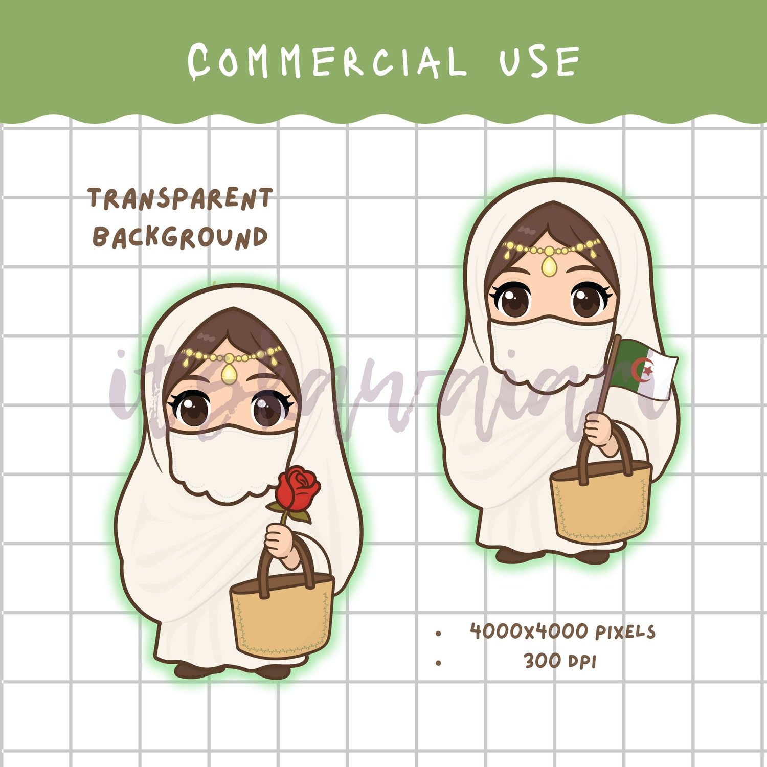 This bundle blends traditional Algerian beauty with modern kawaii charm, drawn and shaded by hand for a warm, authentic look. It’s perfect for artists, designers, and cultural enthusiasts who love cute, high-quality illustrations.