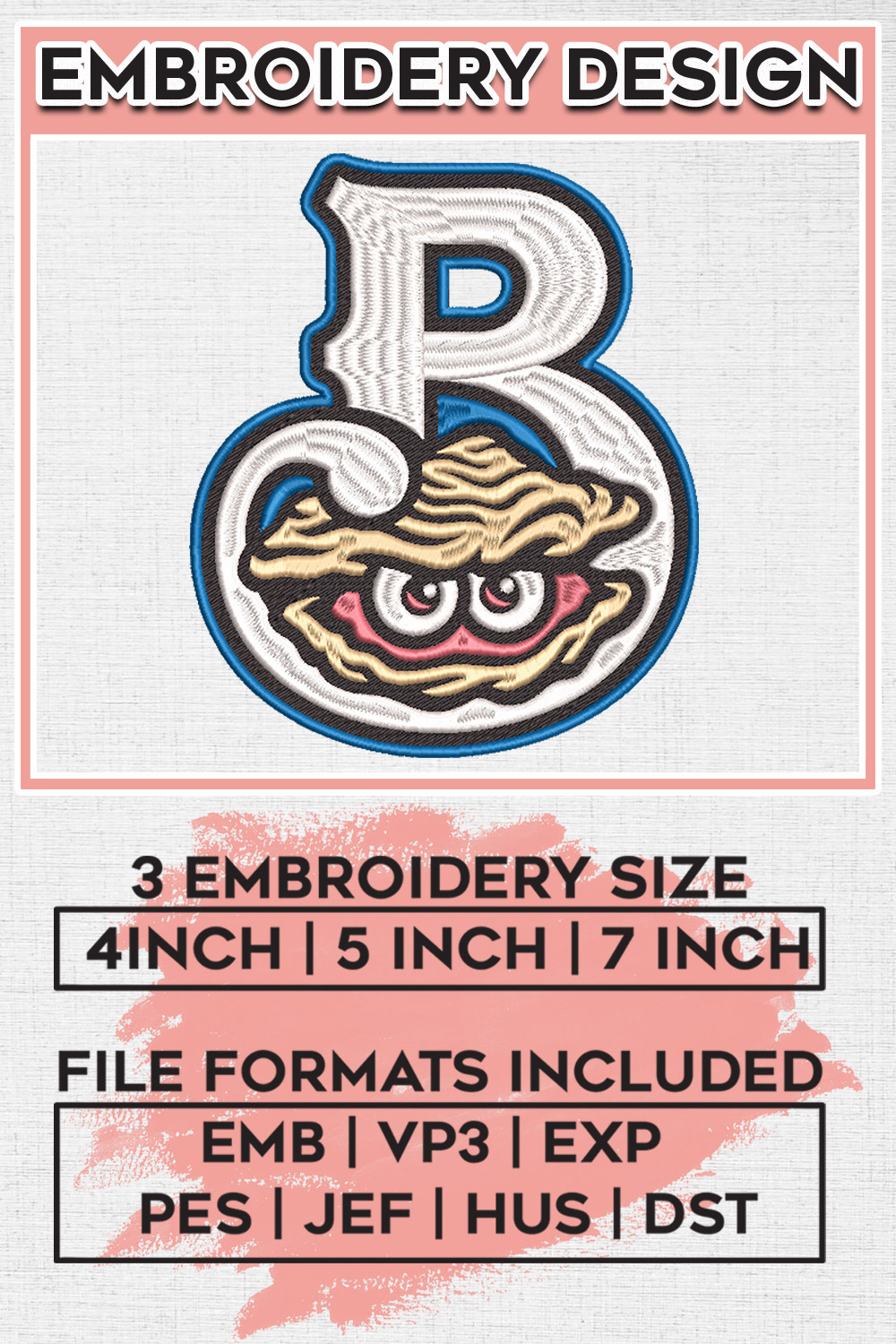 MiLB Biloxi Shuckers Logo Embroidery Designs, Minor League Baseball Logo Embroidery Designs, MiLB Baseball Teams, 3 sizes, Machine embroidery designs, Digital Download