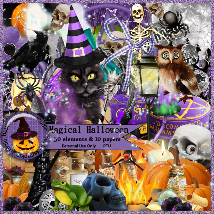 50 non repeated elements and 10 papers large tagger size kit. Its a little bit of that wonderful magic you feel around halloween will work wit loads of different tubes
