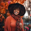 Stock Photos, Stylish African Woman with Natural Hair & Orange Autumn Background