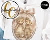 • Boy and girl teddy bear inside cottagecore oval frame with bow